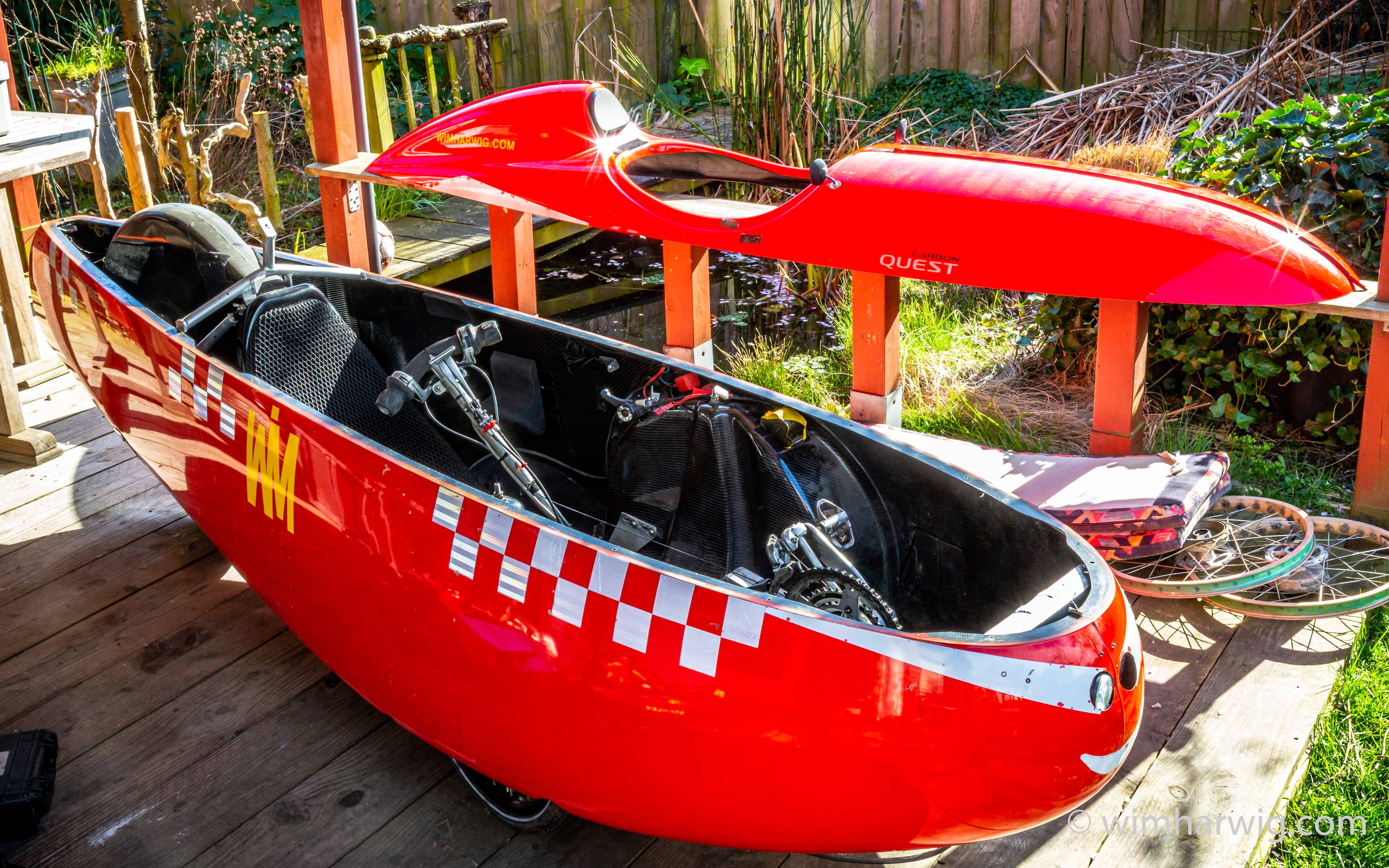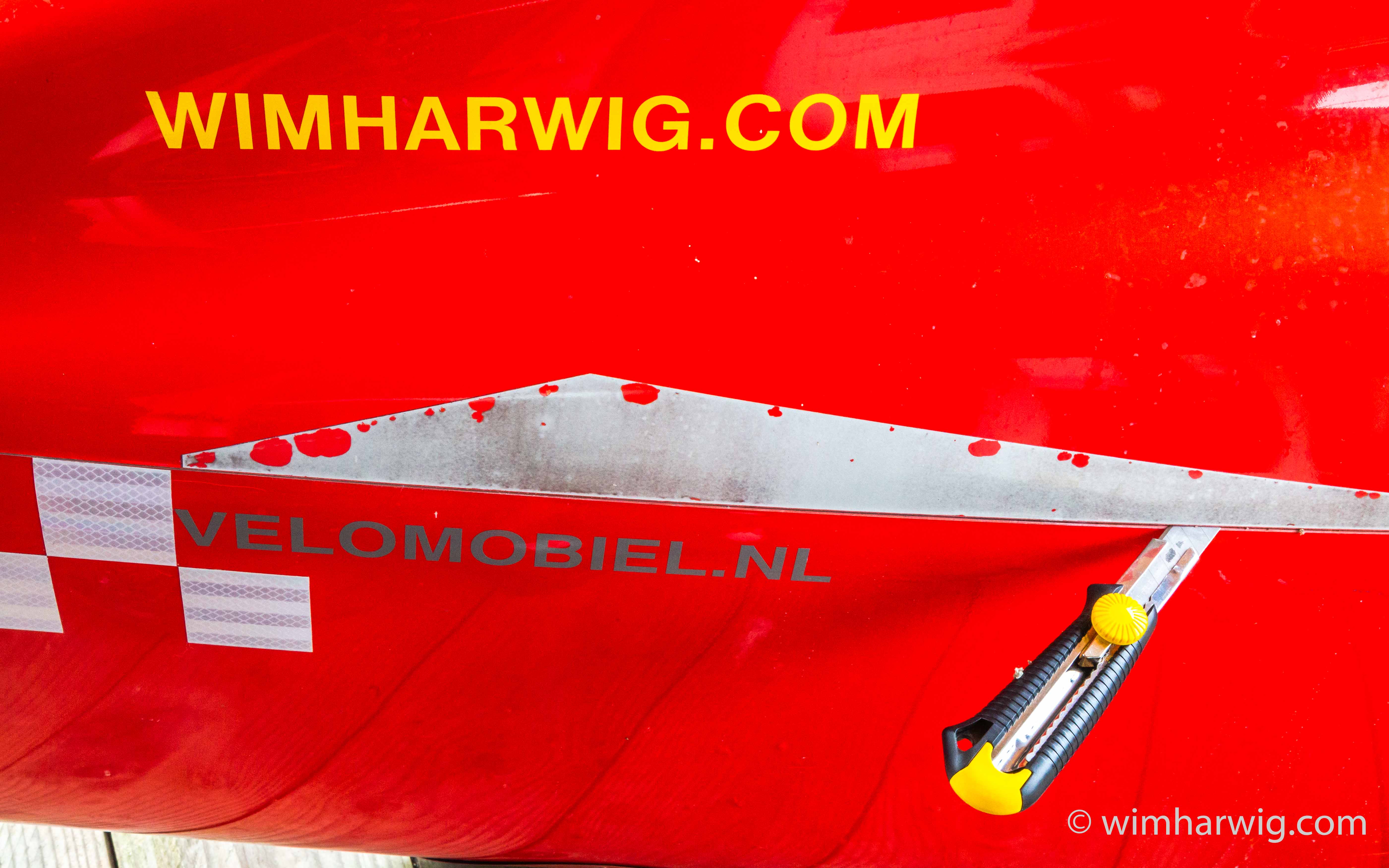 The top is off so that I can easily reach everything inside the Quest-body. I clearly notice that my own body is now 64 years old and the flexibility has disappeared in recent years. The small openings in Quest 552 are such that I have to choose; either see through it, or put one arm through it. So when I am working I cannot see what I am doing at the same time. It has to be done by feeling. To increase the fun, velomobiel.nl has always used different key sizes; wrench size 7 and 8 are mixed up …