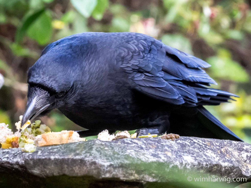 In recent weeks, another carrion crow visits our garden regularly. He searches and forages for food. He already has a fair view of the people who live in our street, because he is observing us daily from the rooftops.