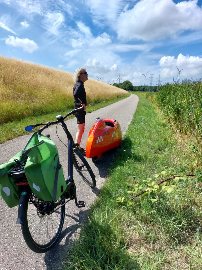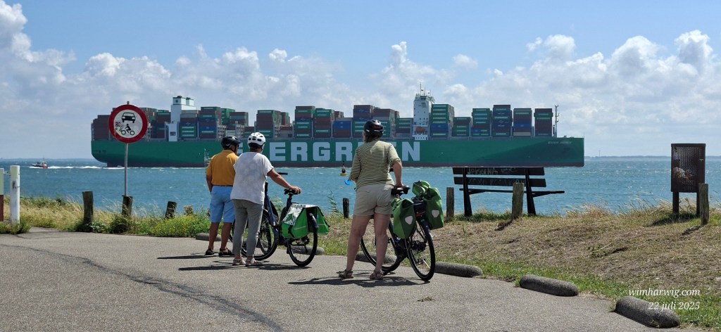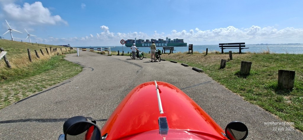 Omdat ik door pijn in mijn onderrug niet lang kan staan zijn Mar en ik na redelijk korte tijd “flyeren” verder gegaan om een stuk door Vlissingen-Oost te fietsen langs de kust. In m’n velomobiel heb ik gelukkig geen last van mijn rug, dankzij de ideale ligfietshouding.